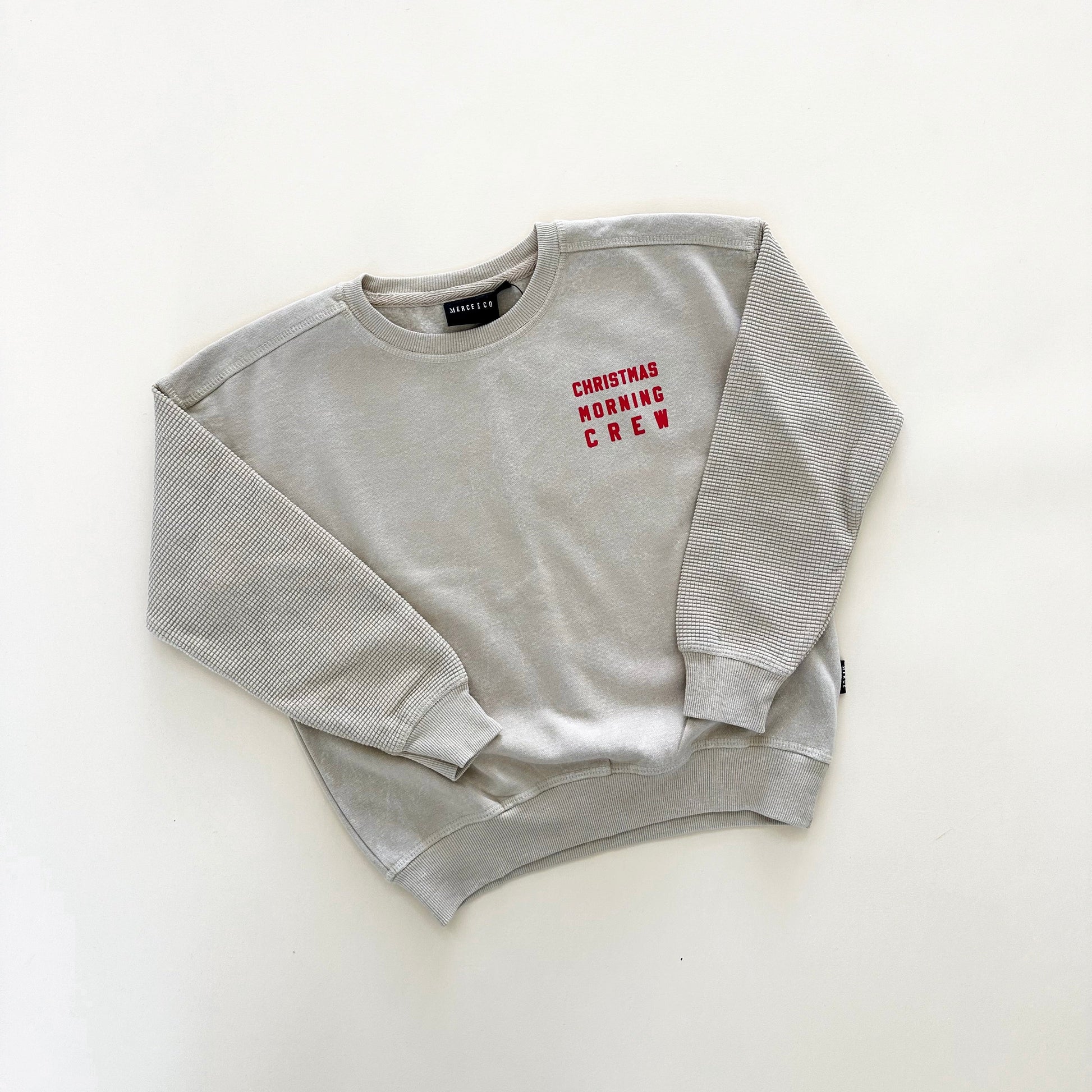Christmas Morning Crew Child Waffle Sleeve Crewneck - Acid Wash Oat