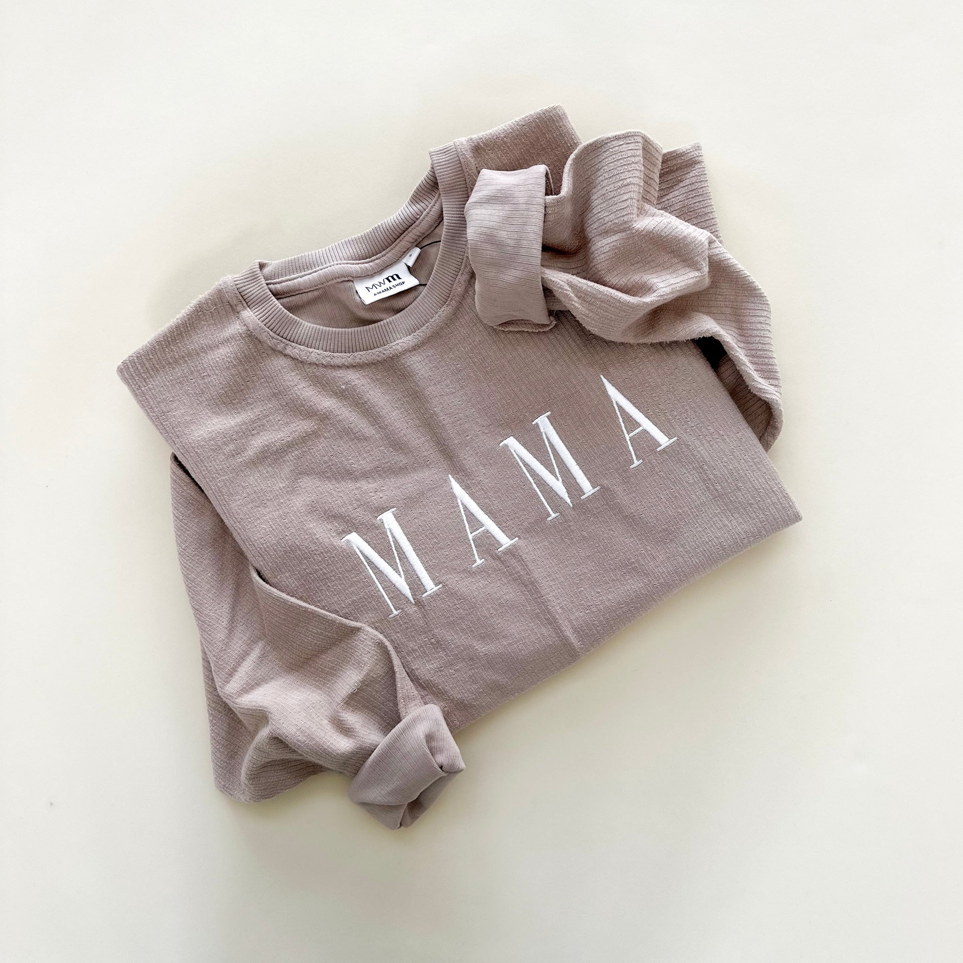 Elegant Mama Embroidered Corded Crewneck - Latte