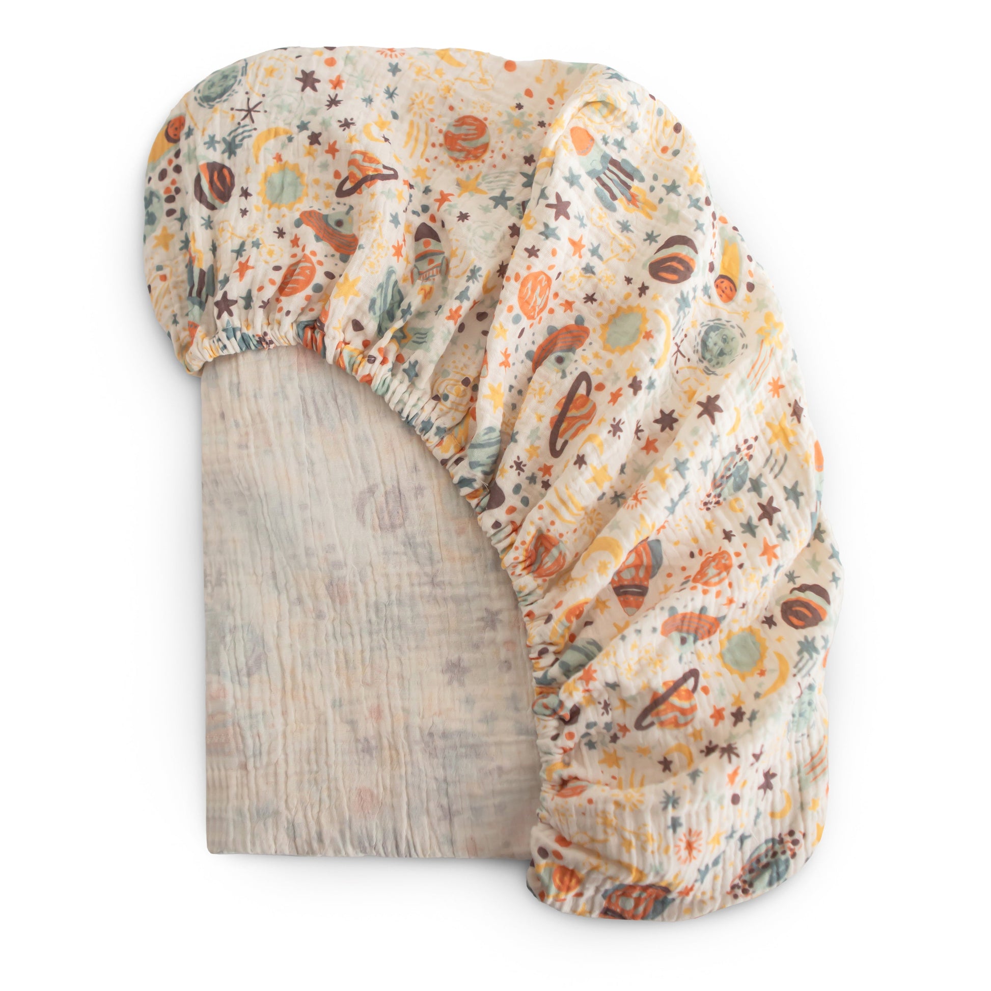 Made from 100% cotton, our cozy, extra soft muslin crib sheets are pre-washed for softness against baby's delicate skin. Muslin cotton stays breathable while keeping your little one comfy and cuddly. Thoughtfully designed in soothing colors and patterns with fully elastic edges and deep pockets for a perfect fit wash after wash.