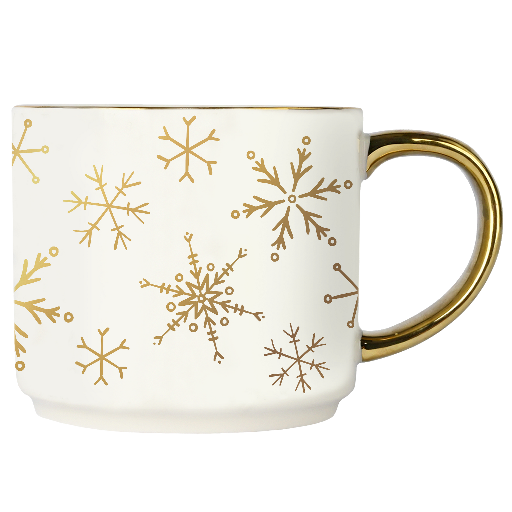 Gold Snowflakes 14oz. Gold Handle Coffee Mug