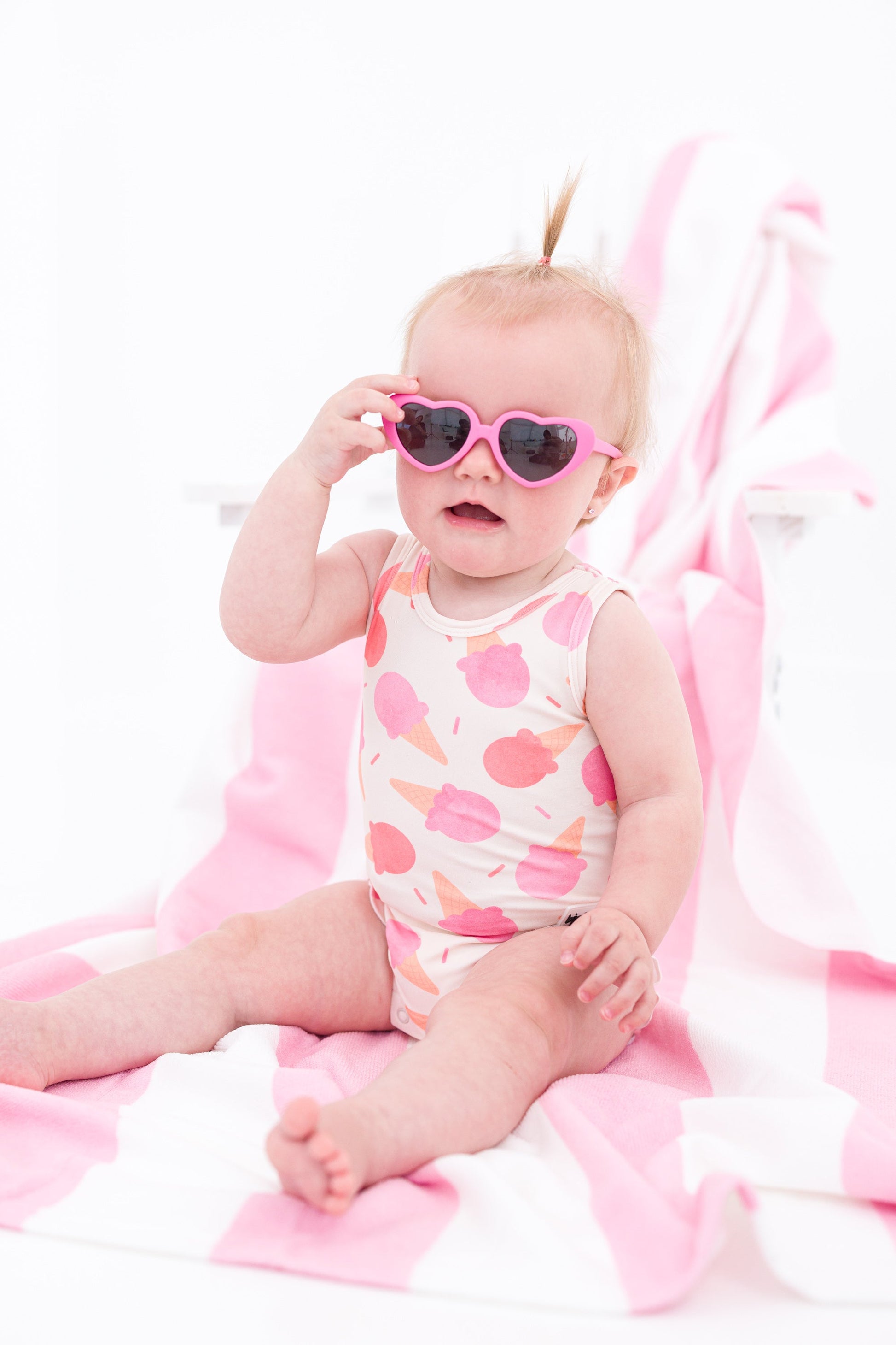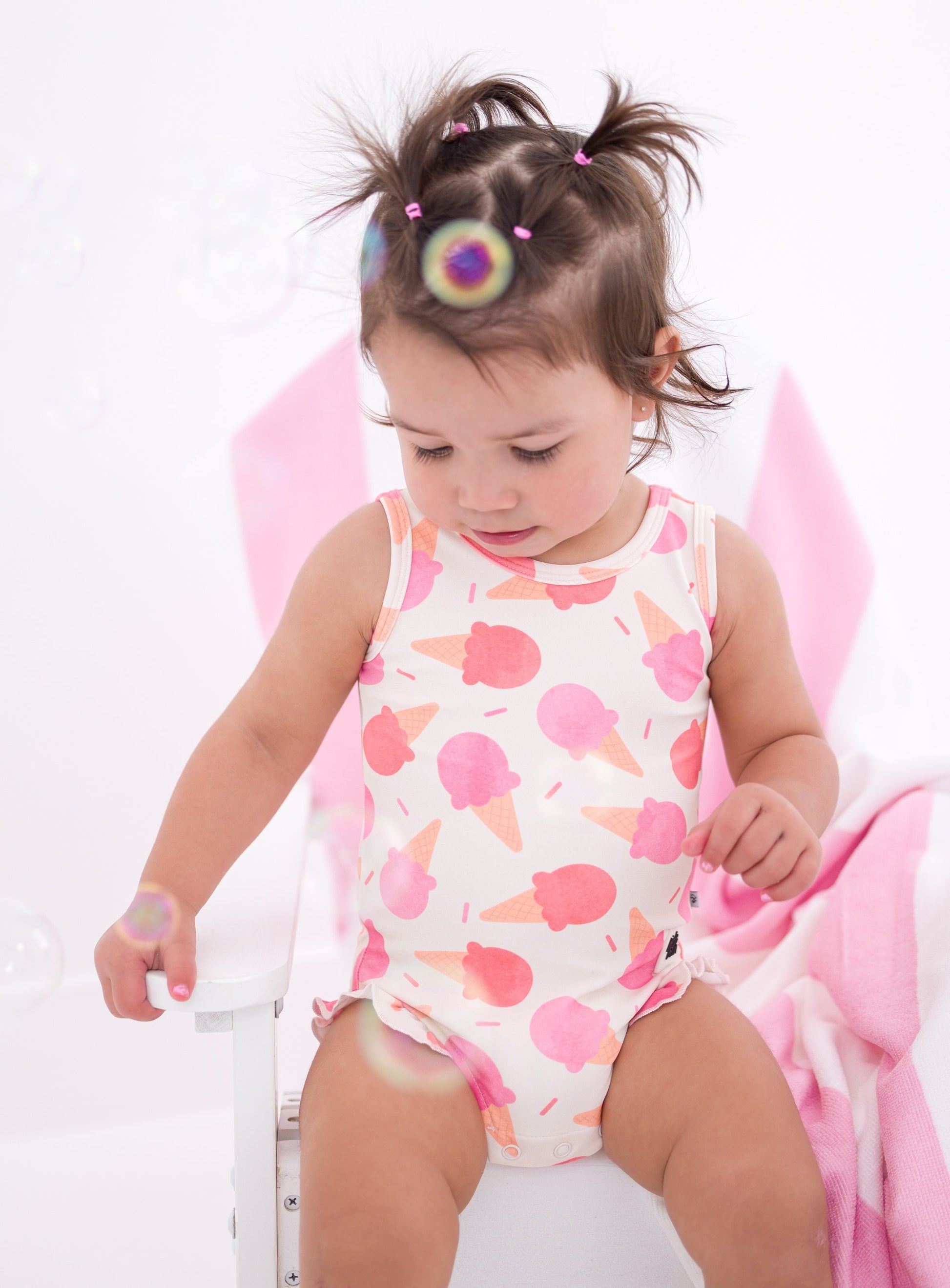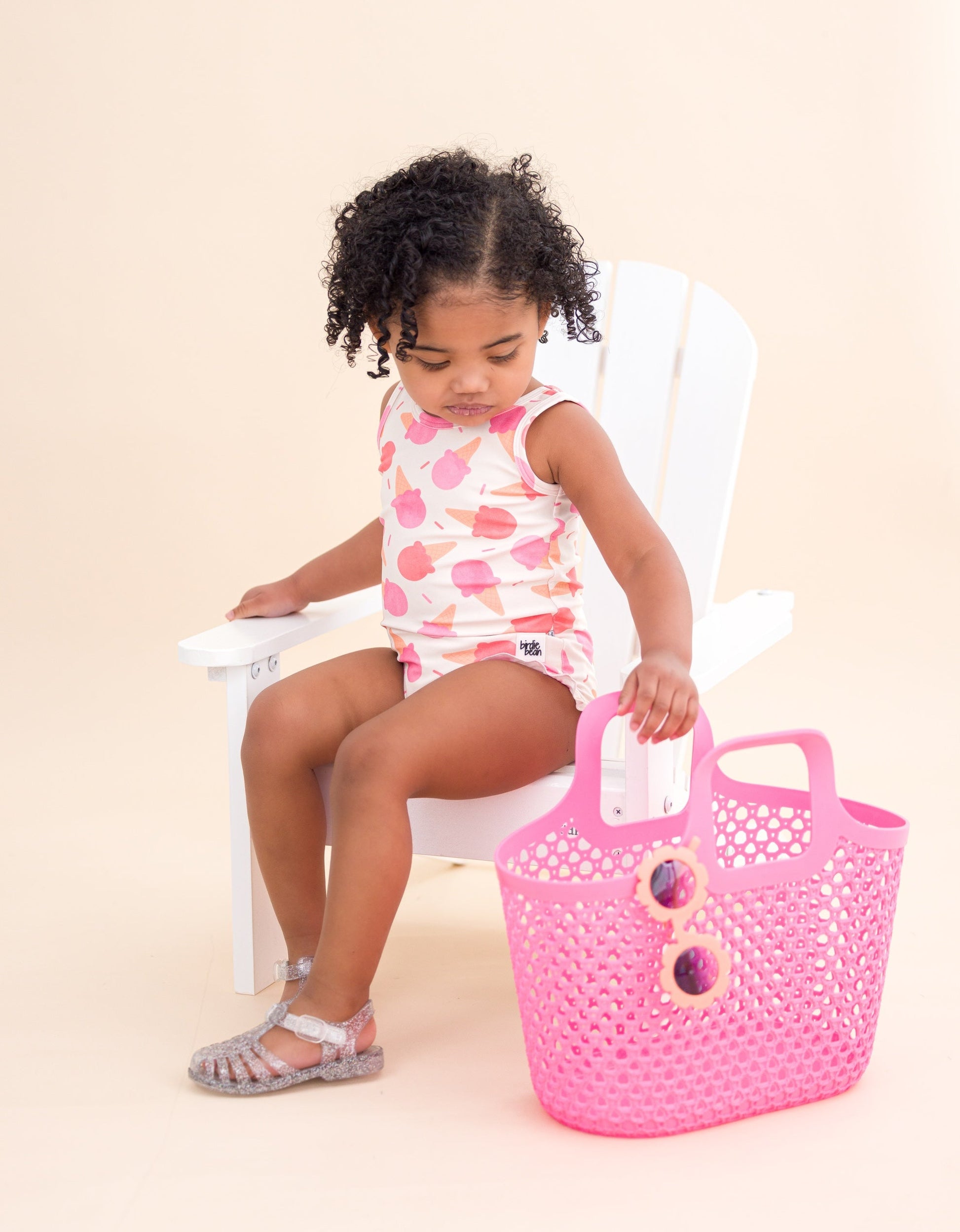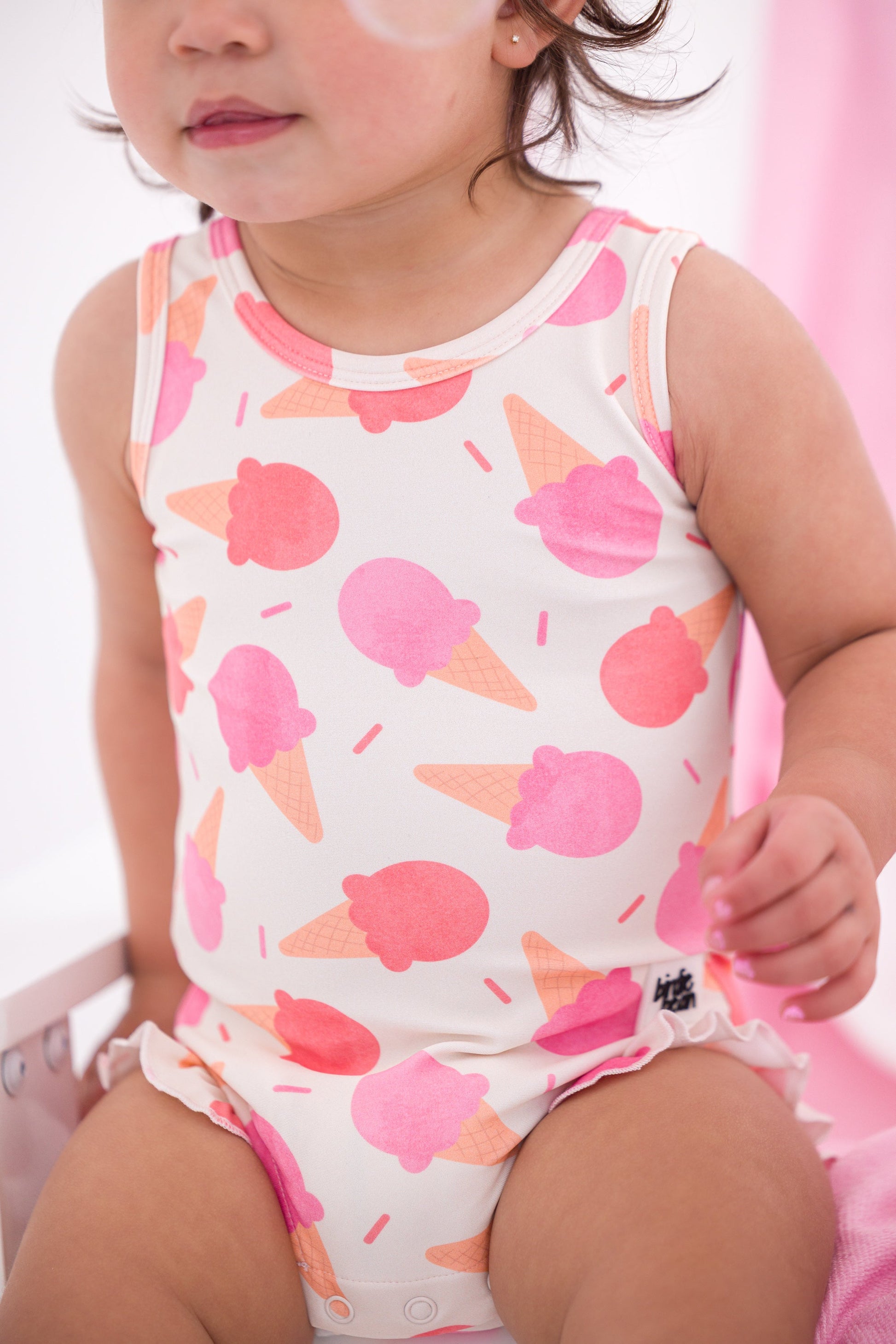 Make a splash with the sweetest swim of the season! This adorable one-piece swimsuit features a fun and playful ice cream print—perfect for all your little one’s sunny adventures. Fully lined for comfort and crafted from high-quality swim fabric, it’s made to move, play, and soak up every summer memory.
