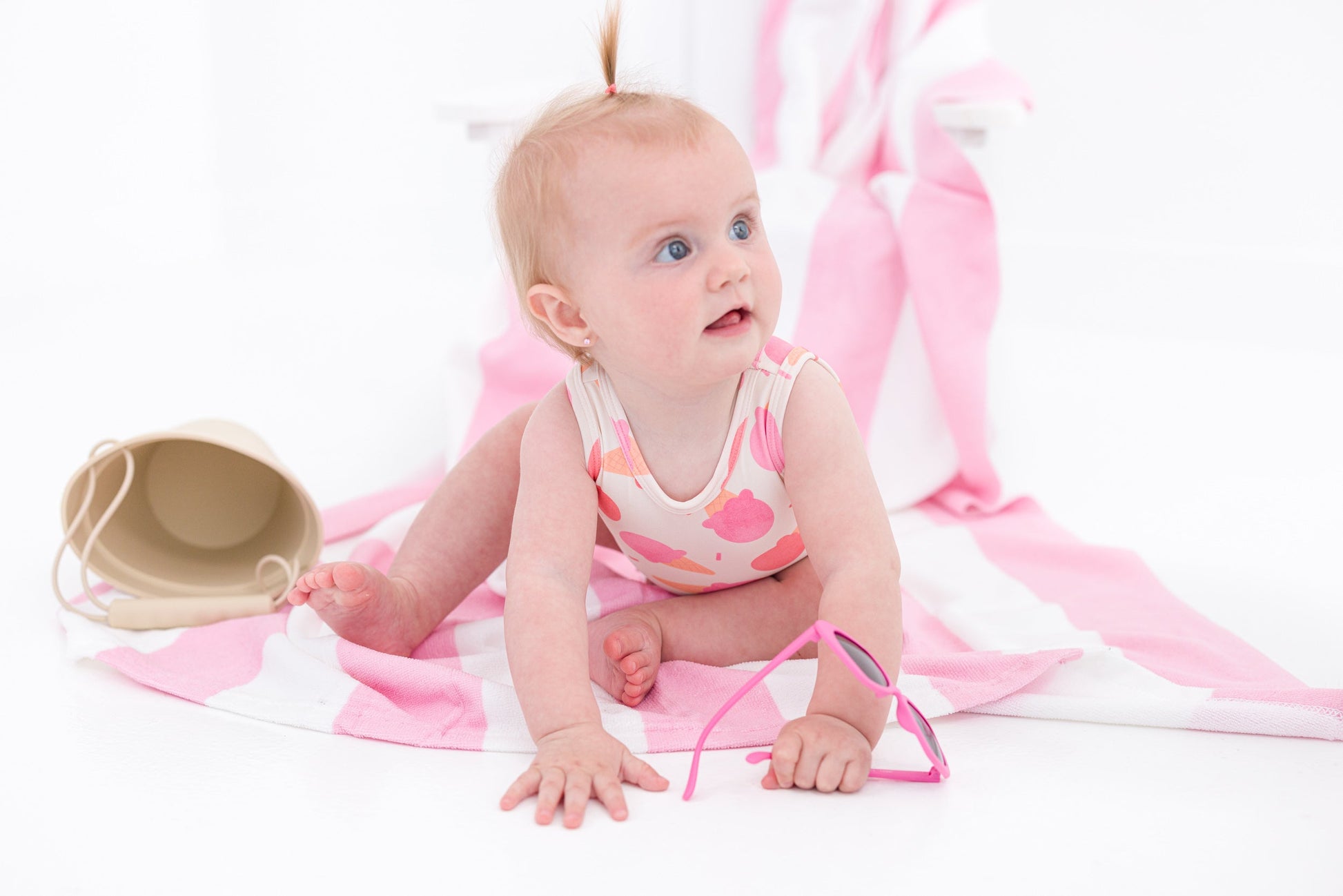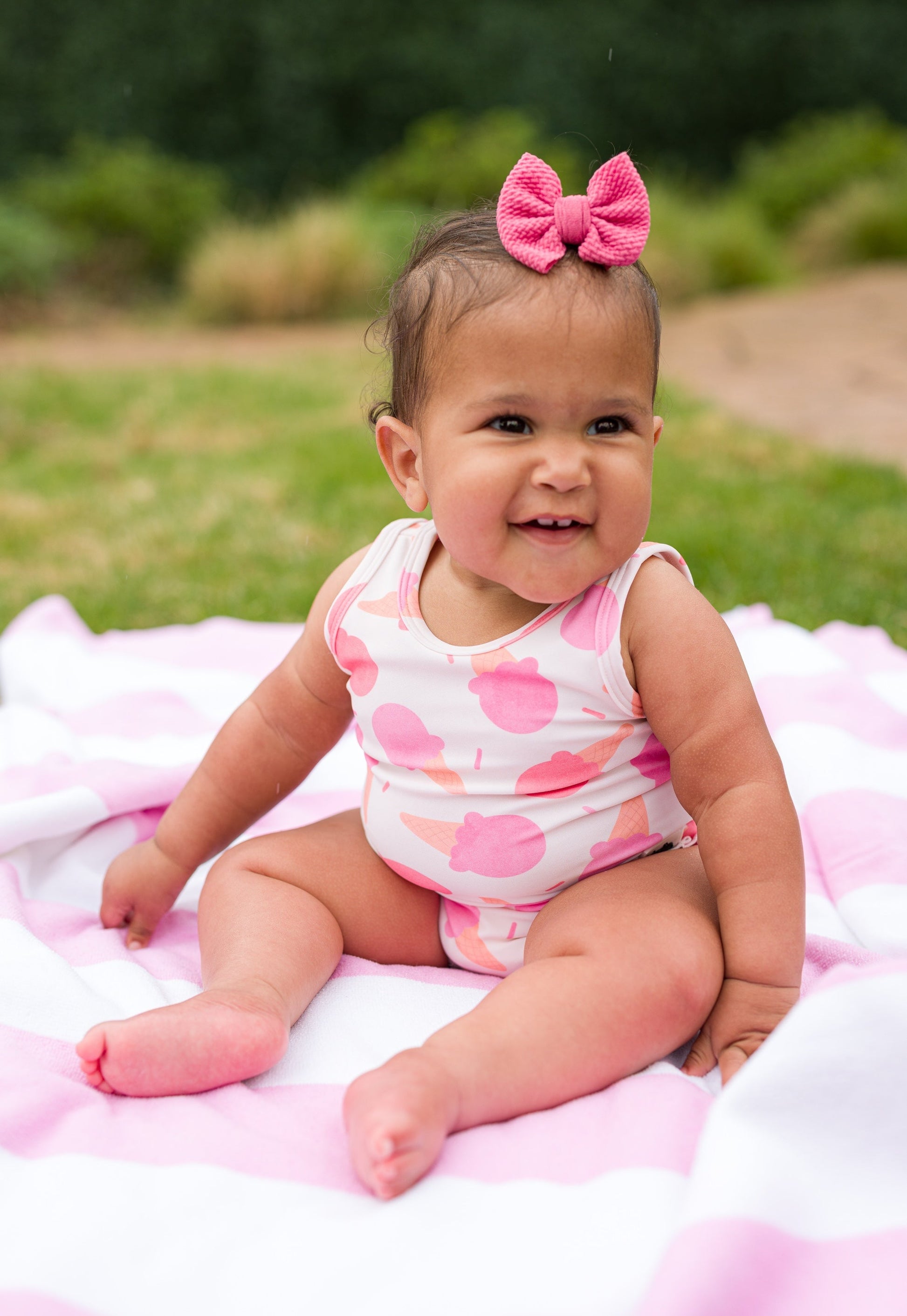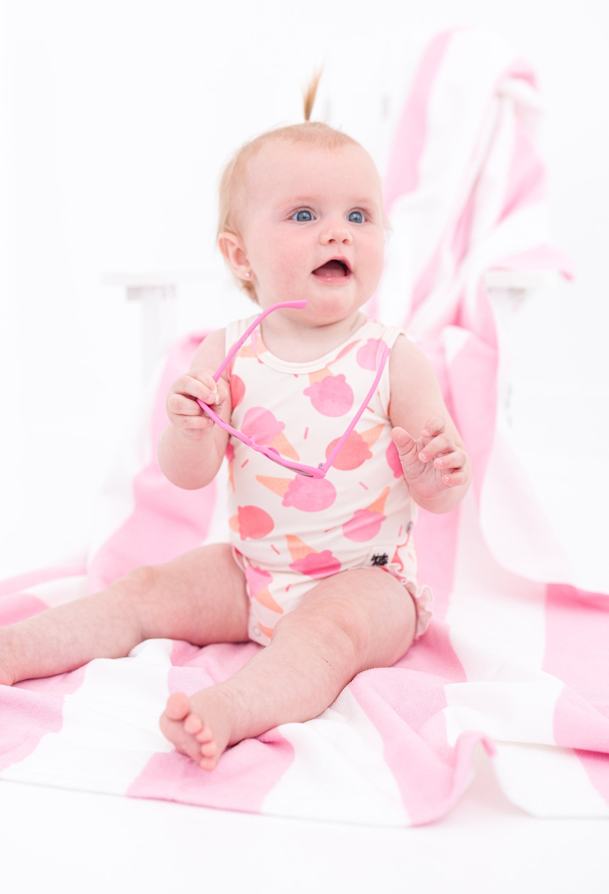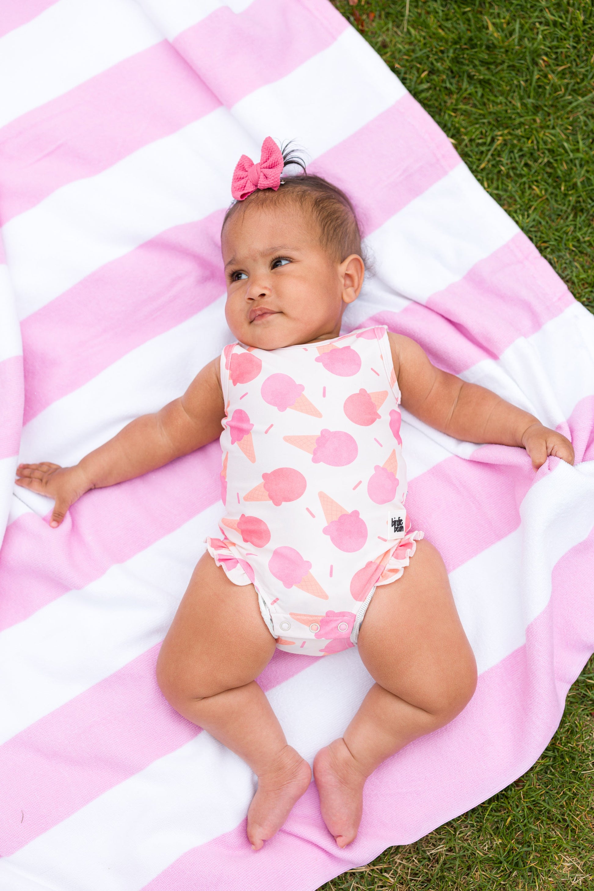 Make a splash with the sweetest swim of the season! This adorable one-piece swimsuit features a fun and playful ice cream print—perfect for all your little one’s sunny adventures. Fully lined for comfort and crafted from high-quality swim fabric, it’s made to move, play, and soak up every summer memory.