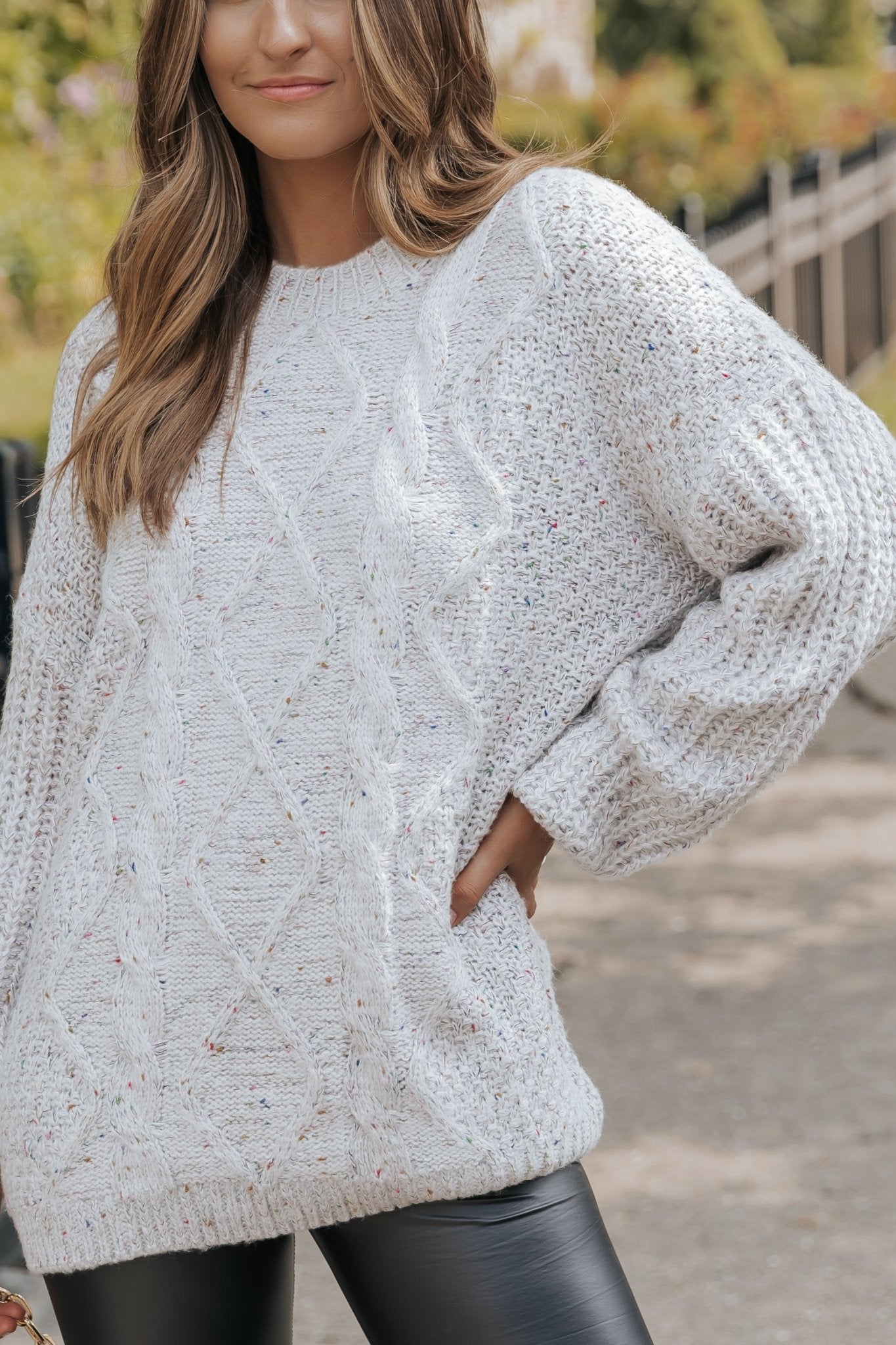 Heather Grey Confetti Cable Knit Sweater