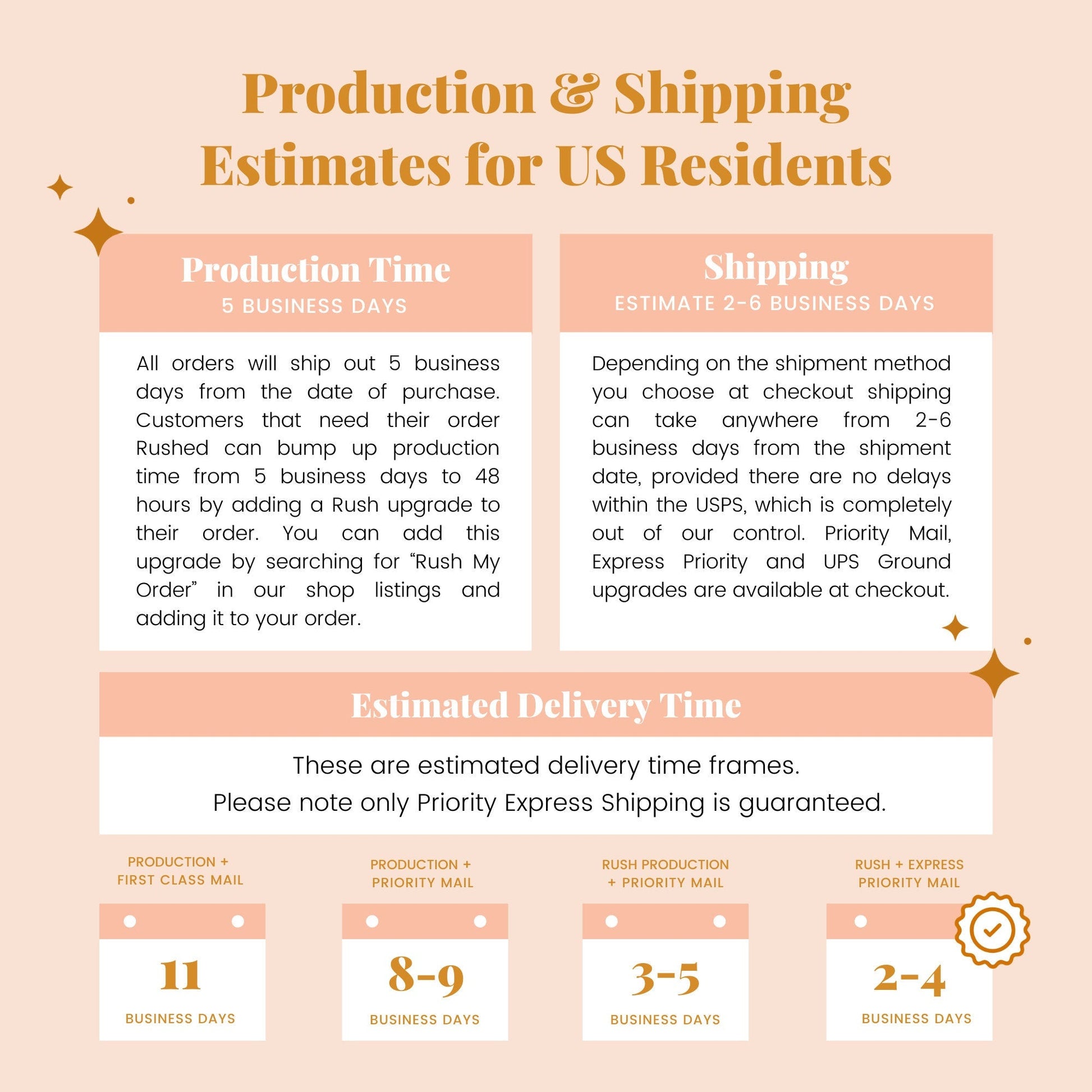 - Orders ship 24-72 business hours after order is placed.