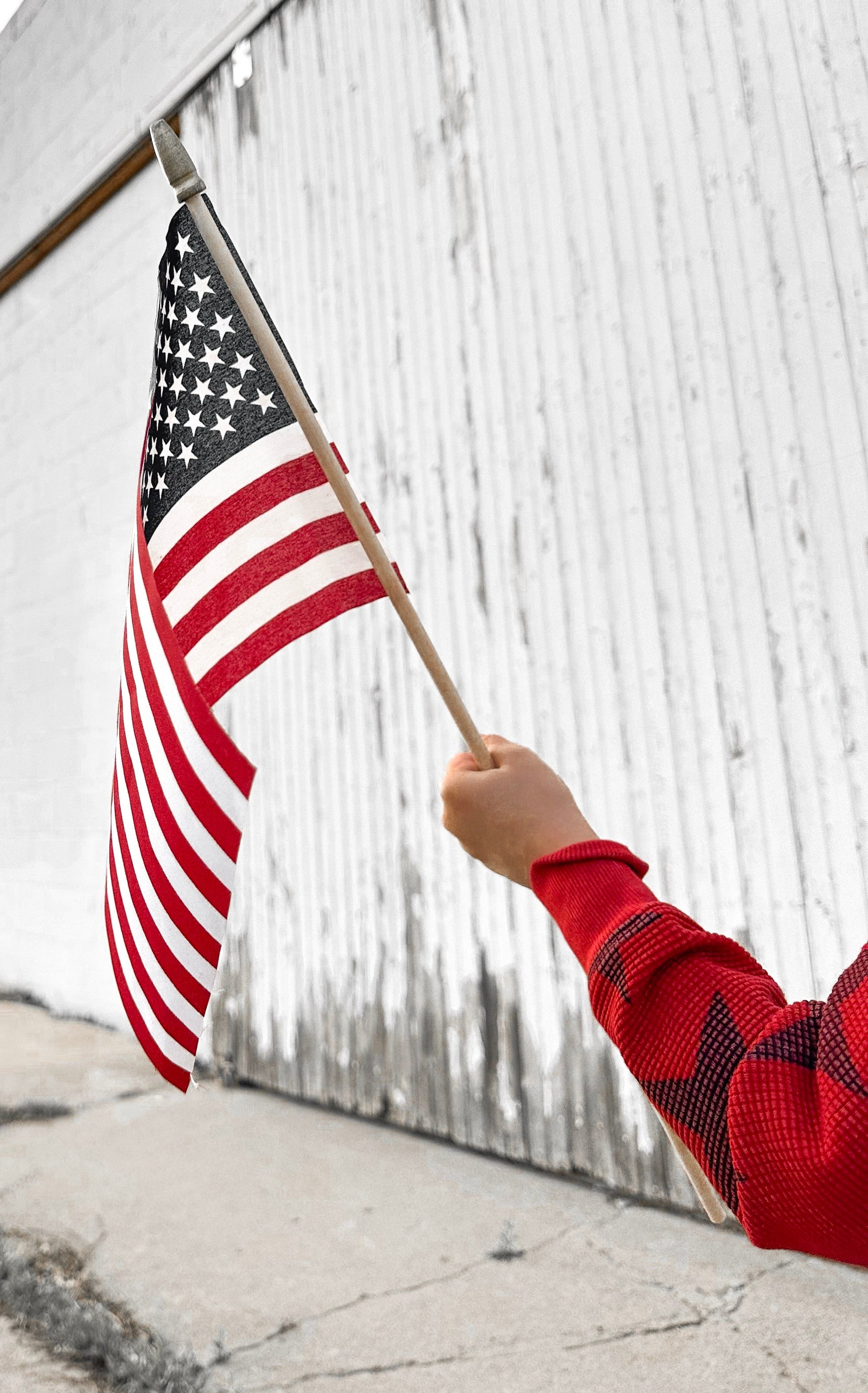 America Adult Waffle Sleeve Star Crewneck - Red