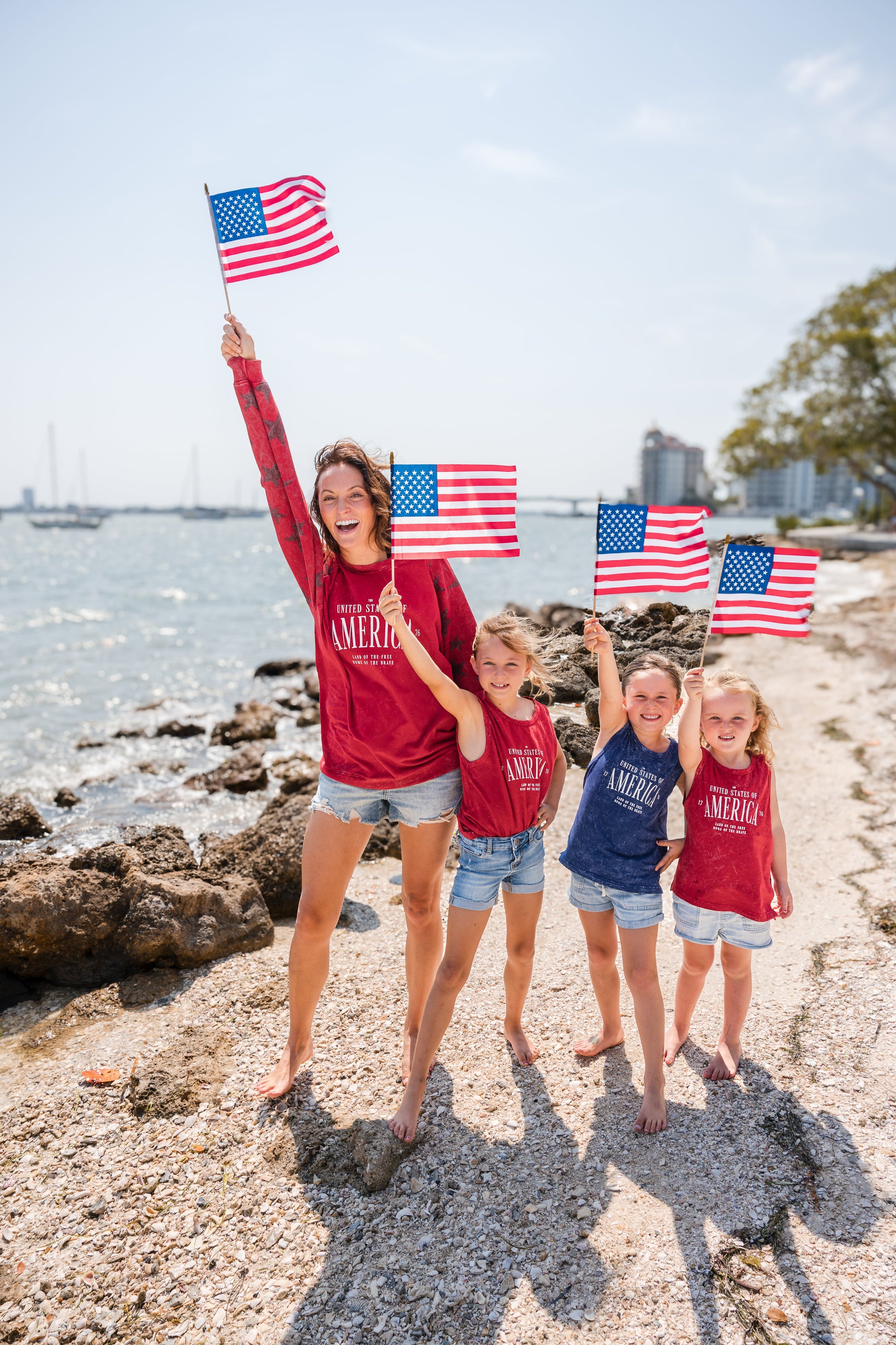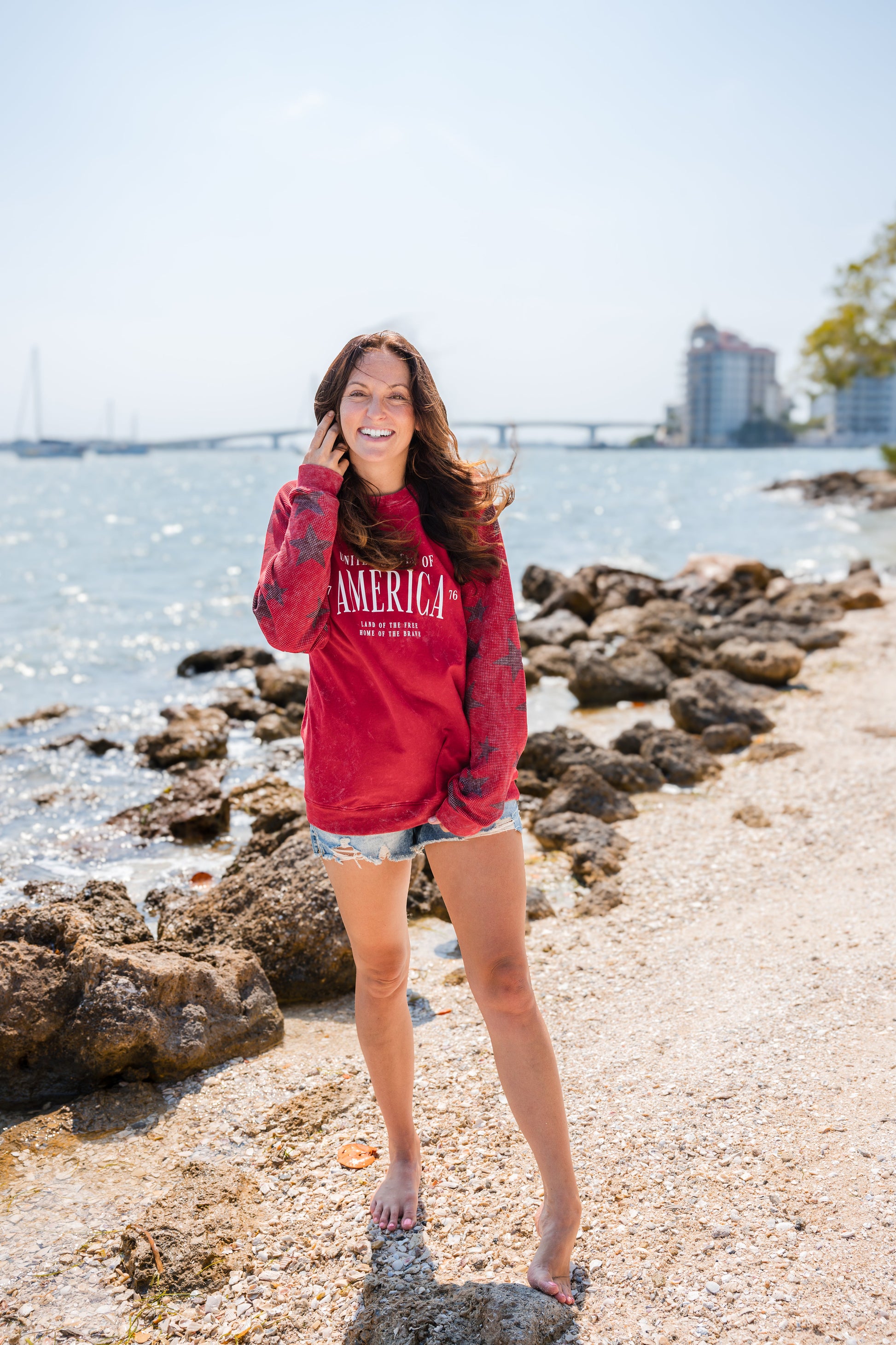 MERCE & CO x KIM PERRY: America Adult Waffle Sleeve Star Crewneck - Red
