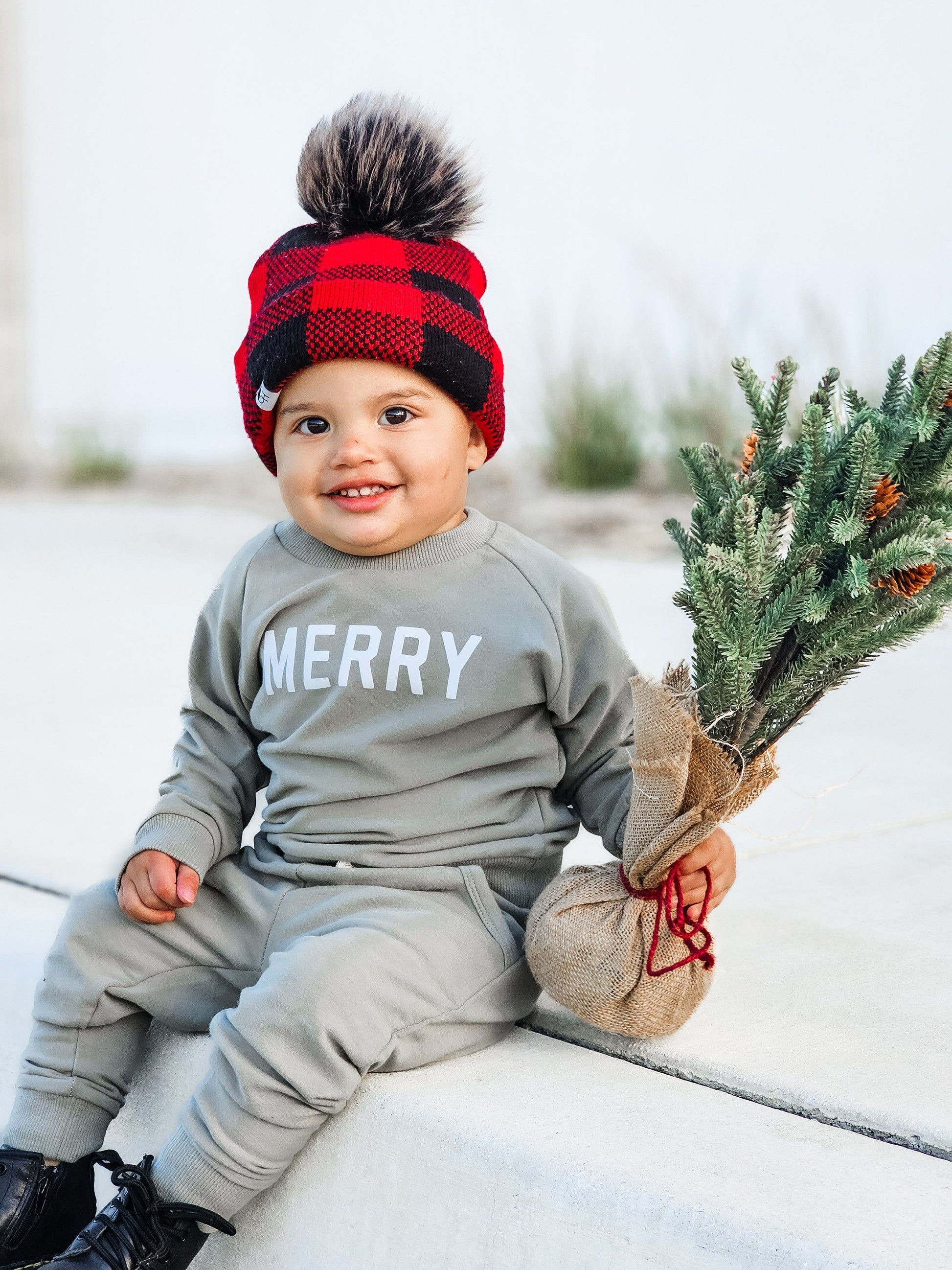 Designed for practicality, the jogger set is available in sizes ranging from 0-3 months to 4T, ensuring a comfortable and stylish fit as your child grows. Let your little one celebrate the season in our Merry Jogger Set, where premium French terry meets festive design for a look that's both cozy and charming.