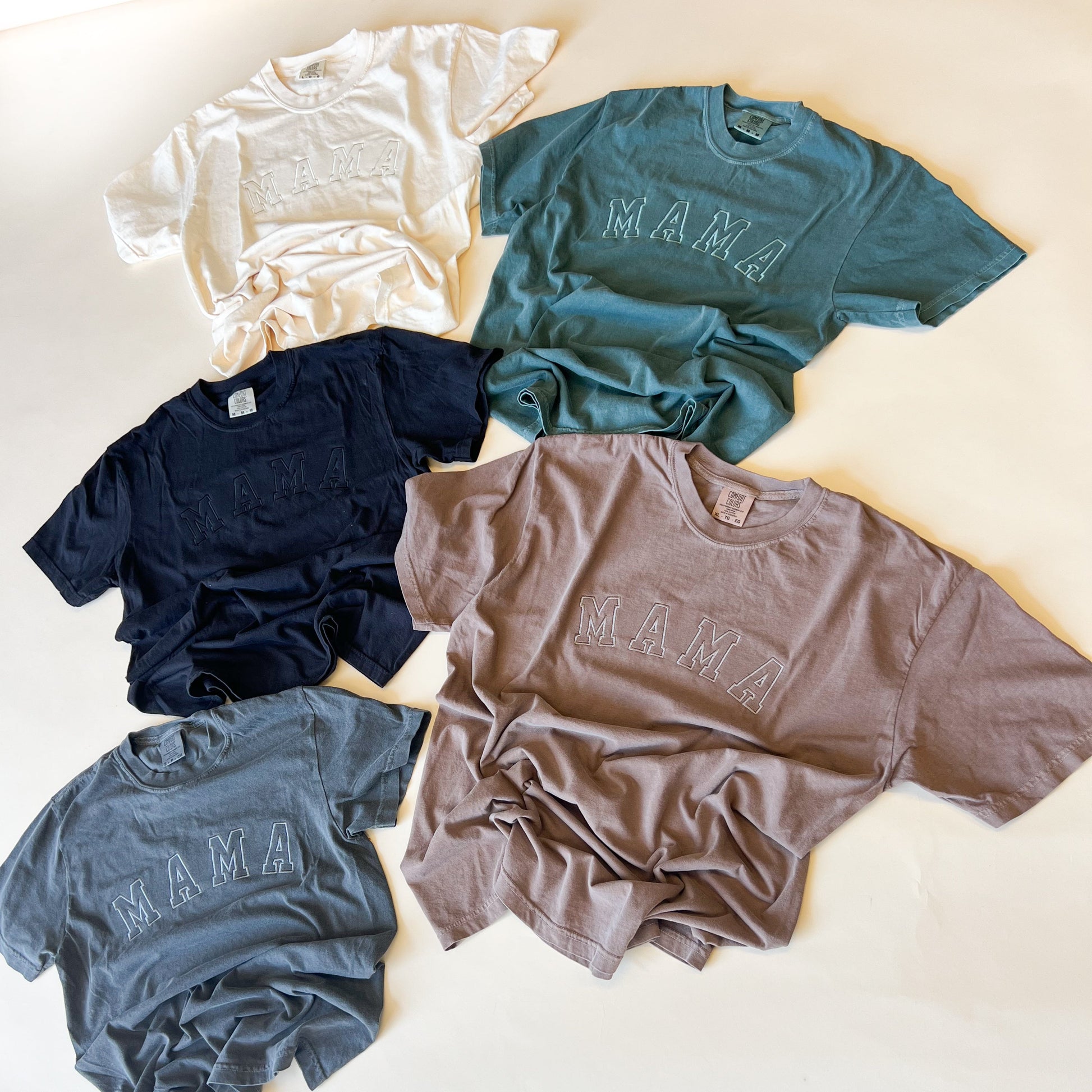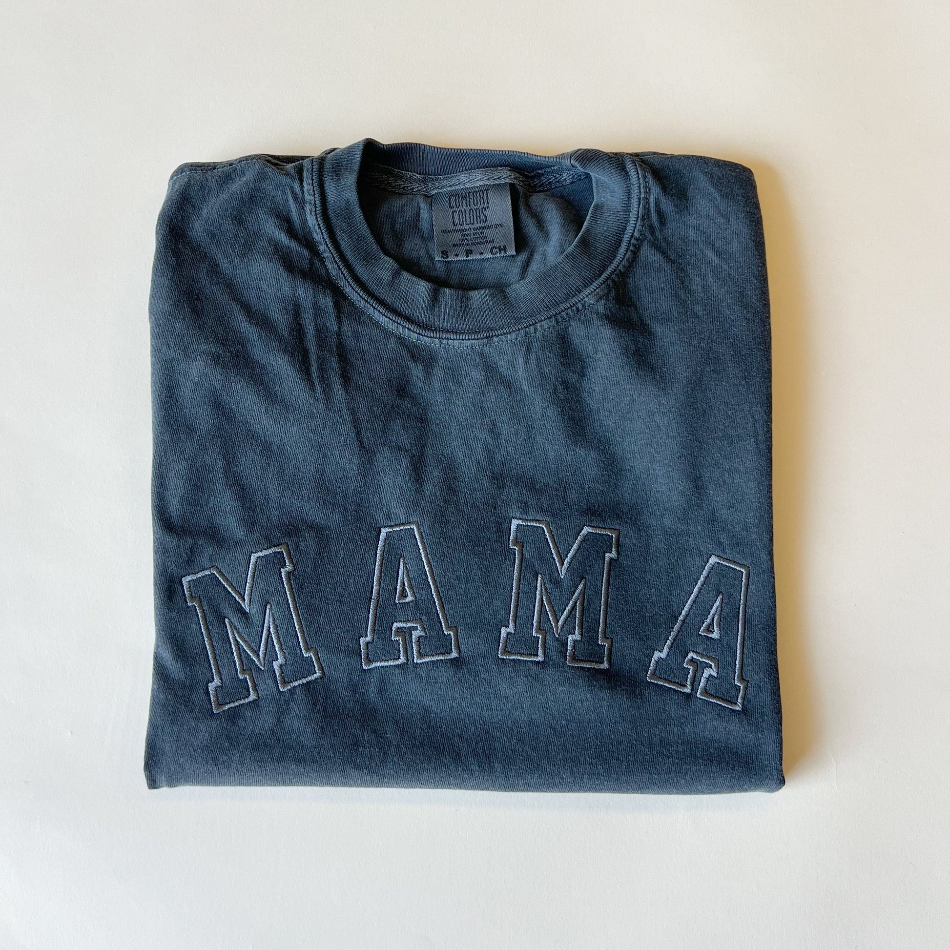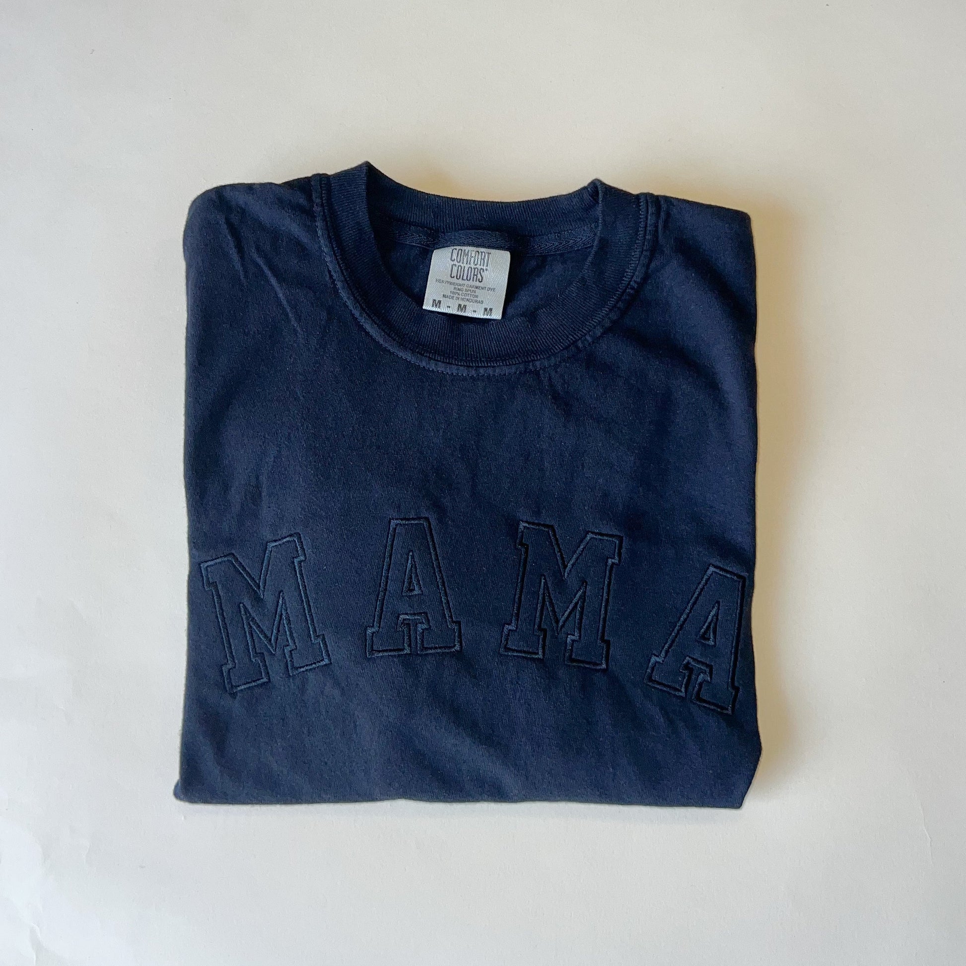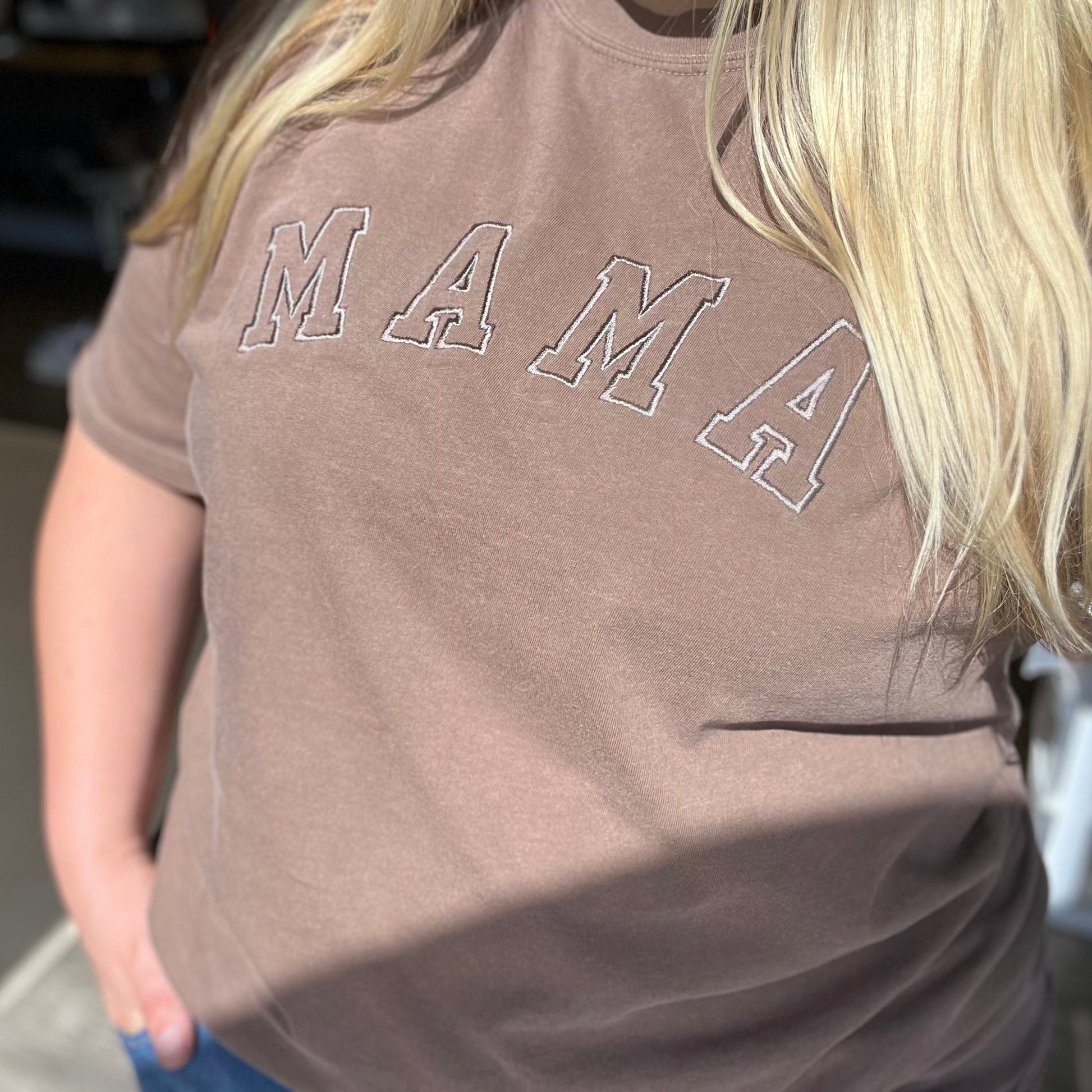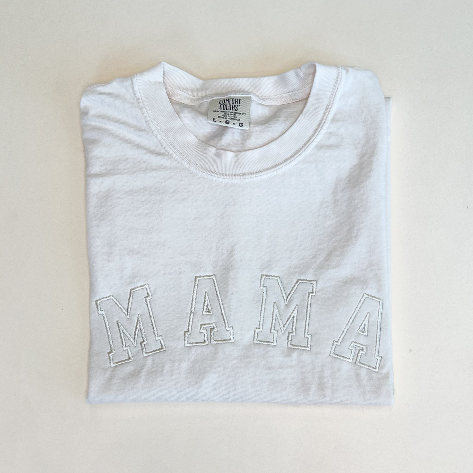 Neutral Mama Tee - Embroidered Varsity Design - Tonal