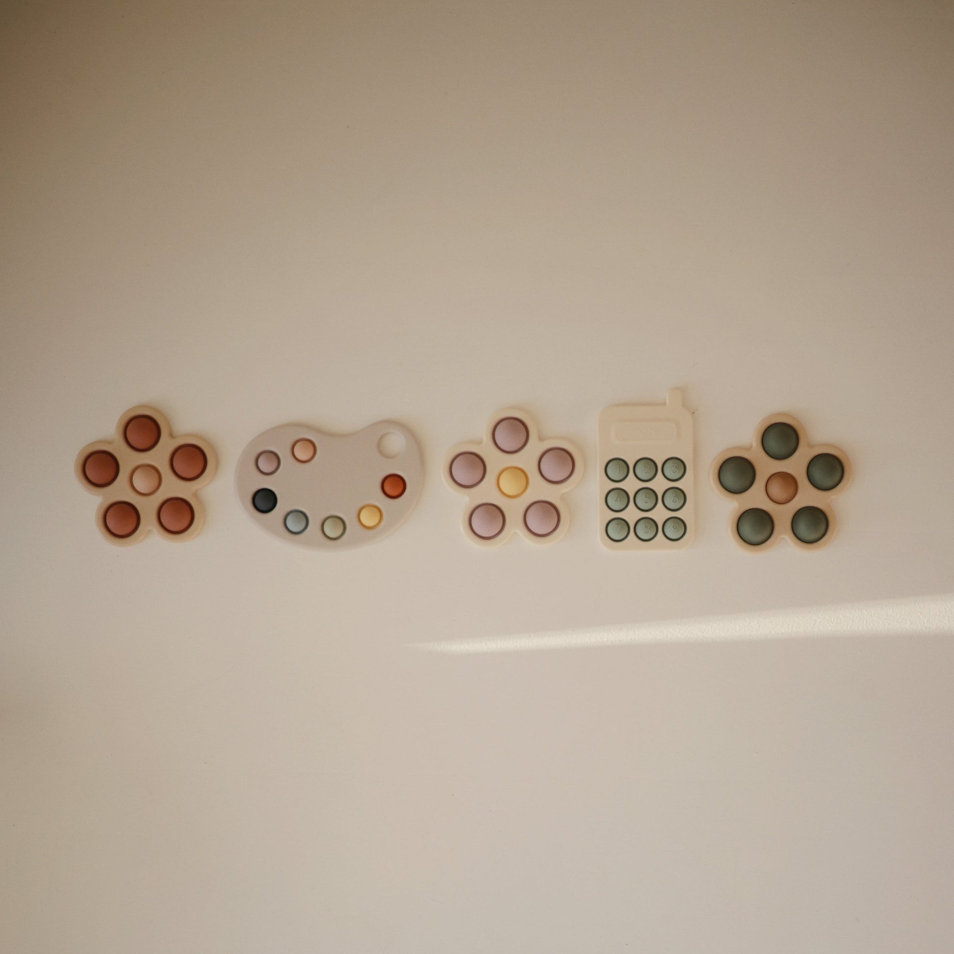 Made with little hands in mind, our paint palette press toy encourages sensory exploration and the development of fine motor skills with its simple design and soft colors. Featuring food grade silicone and a BPA-free plastic frame, children will tap into learning as they press the bubbles and hear a gentle pop.