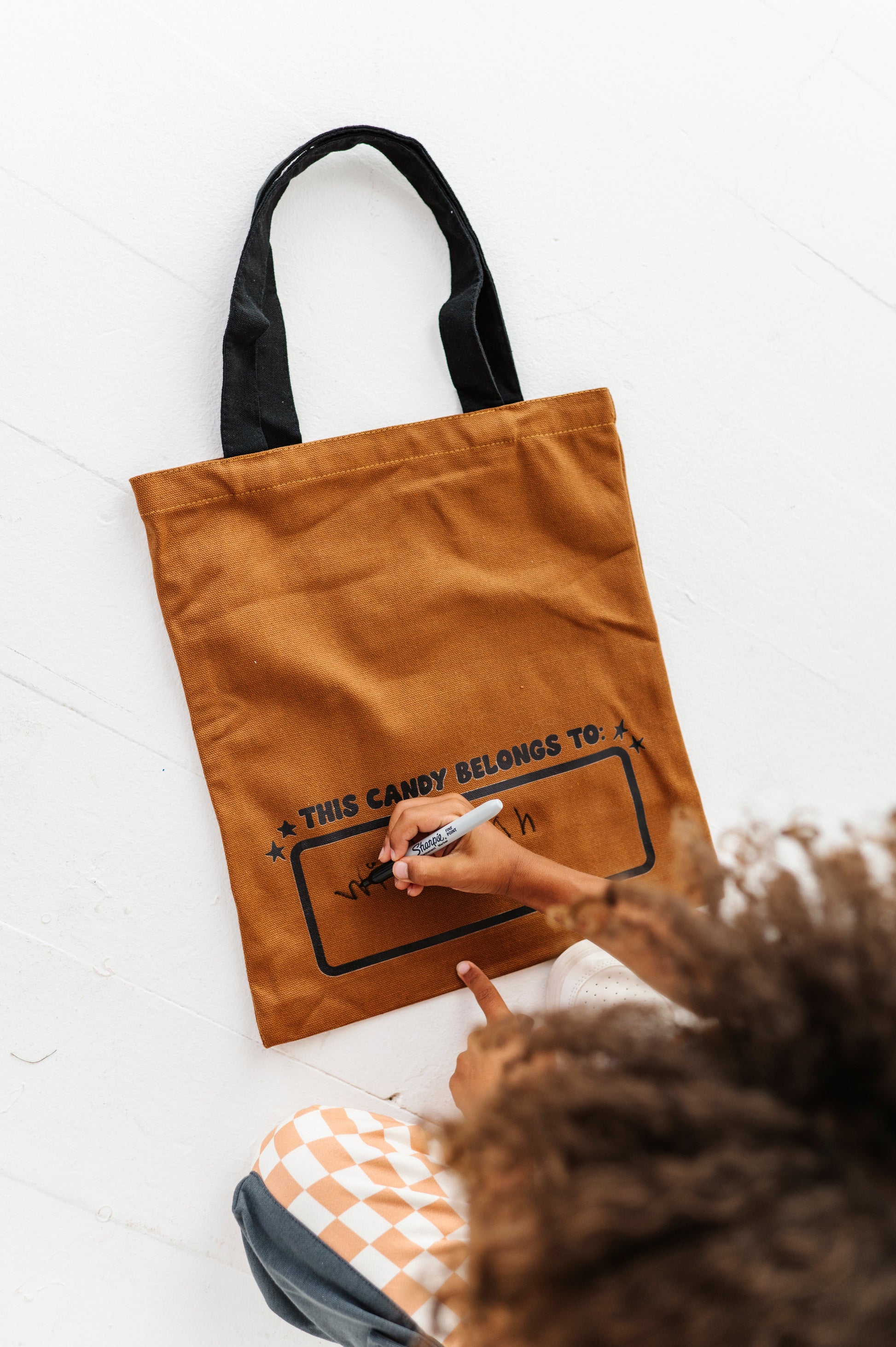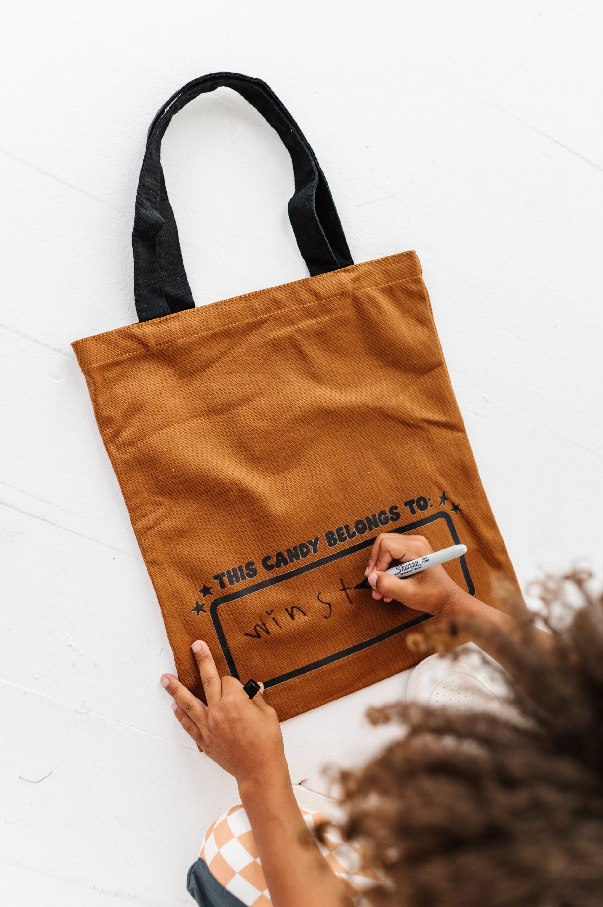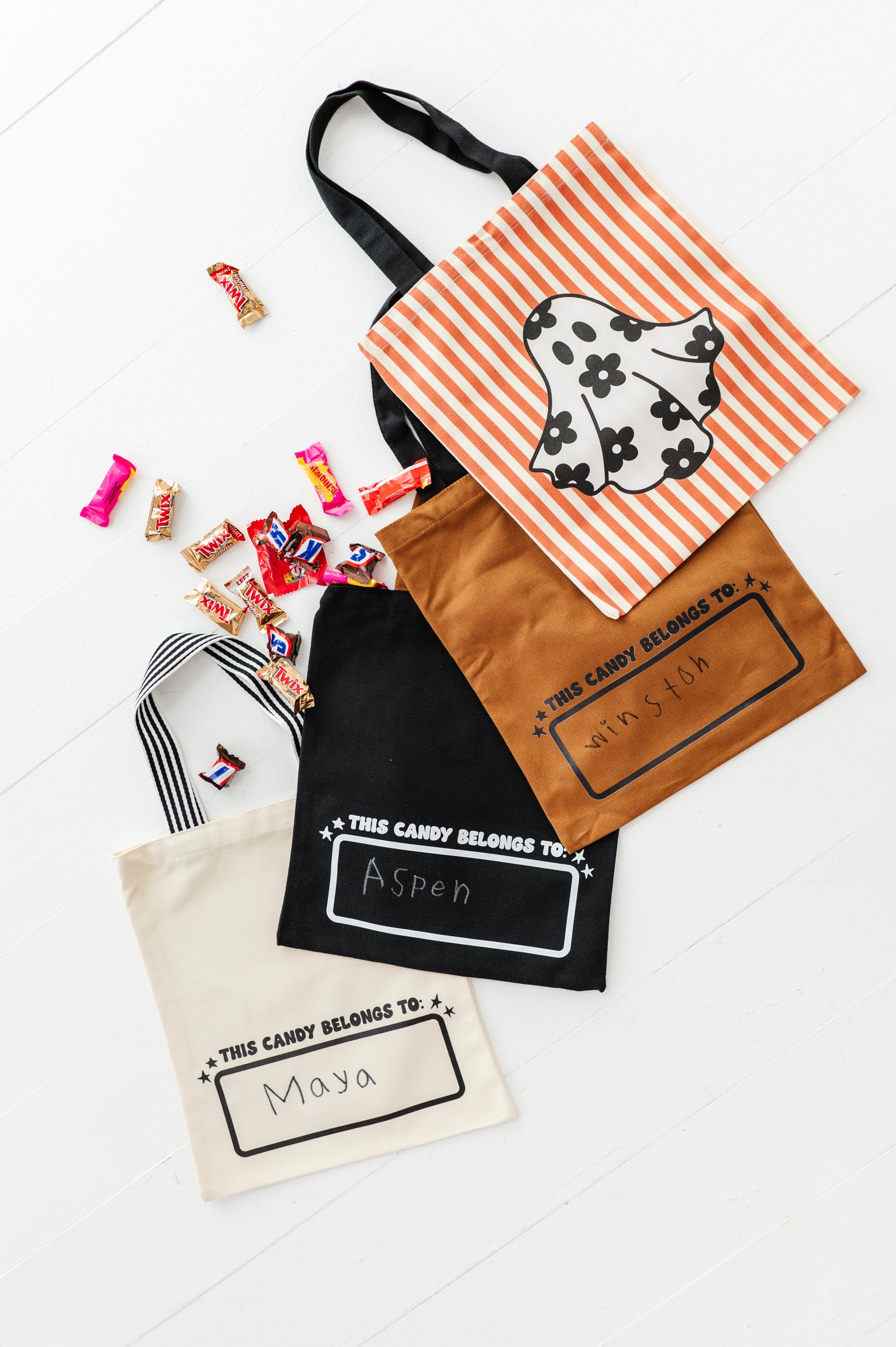 Our NEW and improved trick-or-treat bags are back! These were such a hit last year and are the most fun (and cute) way to trick-or-treat this Halloween! Each bag comes with a sharpie marker to write your child's name on the name tag on the back! This is such a fun activity for your kids to be able to "claim their candy" :) BAGS MEASURE 40X35 CM WITH HANDLES THAT DROP DOWN 10.5''