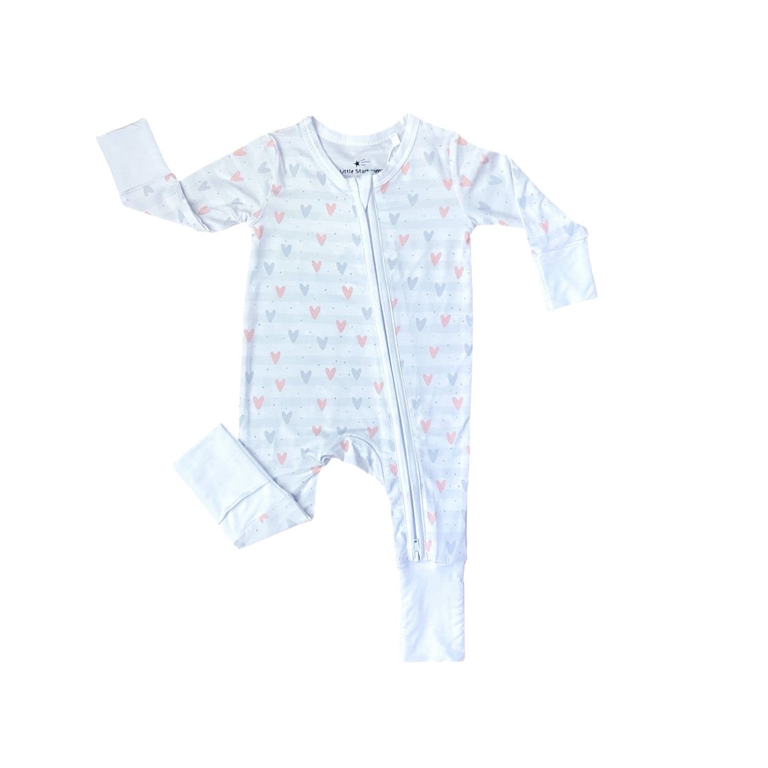 This zippered coverall is designed from an ultra-soft blend of bamboo and spandex making it the perfect breathable fabric for your little star. The coverall contains a 2-way zipper making diaper changes a breeze as well as fold over feet and mittens.