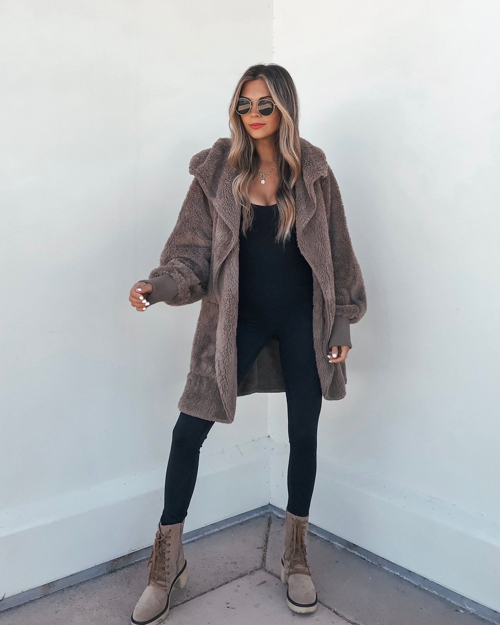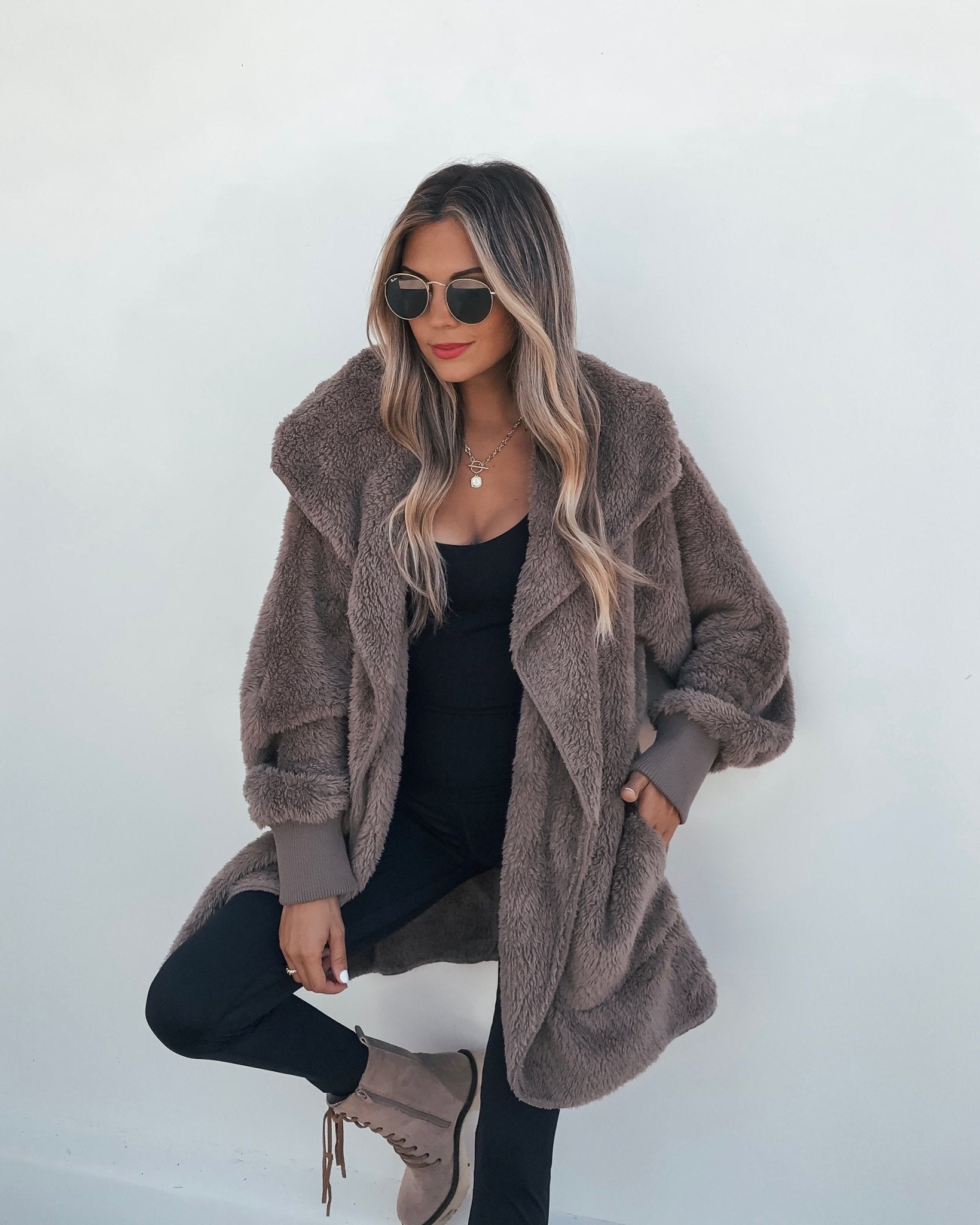 Perfect for chilly days, this teddy fleece cardigan is a must-have for any fashion-forward wardrobe! Stay stylish and cozy this winter with our Teddy Fleece Hooded Cardigan. It features an open front, side pockets, and a blanket soft texture. It's also available in cream. Layer it over a basic tank top or bodysuit and then pair with jeans, ankle booties, and a matching crossbody bag for an elevated boho chic look!