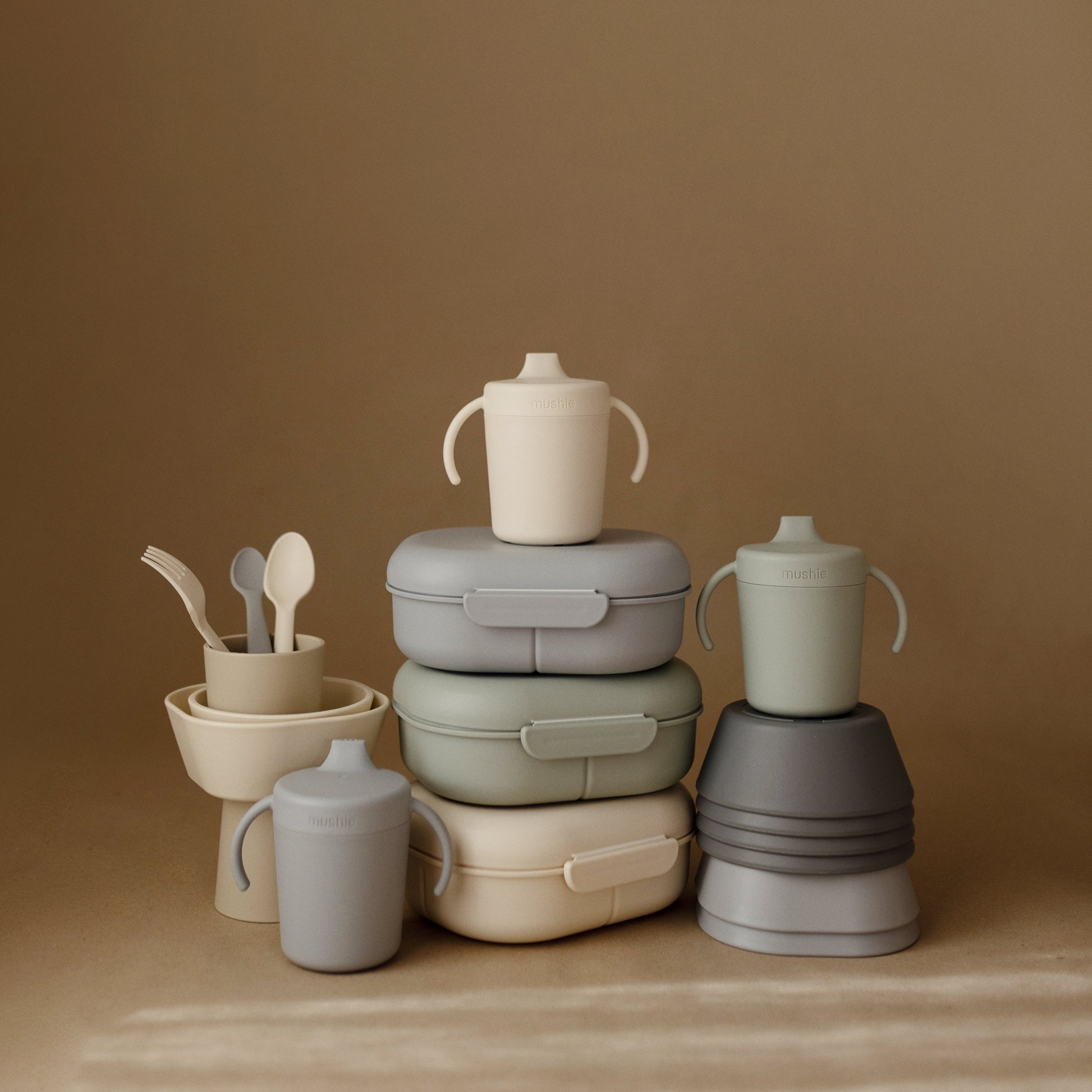 Keep your little one hydrated on-the-go with the Mushie Trainer Sippy Cup. Carefully crafted in Denmark from durable, non-toxic plastic, these cups are easy to clean and dishwasher safe. Easy-grip handles make it simple for little hands to self-serve when thirsty, while the removable lid makes refilling easy and mess-free.